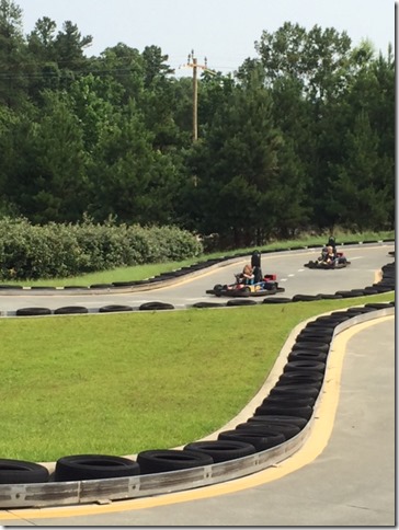 Avery chose the go-carts, which was really, really funny. I am not sure she has ever driven one by herself before. Maybe once. And she was sooooo funny. Pushing the gas and brake at the same time and basically not letting the 2 little boys pass(lap) her. She even ran one of them into a wall. She was just a laughing the whole time!!